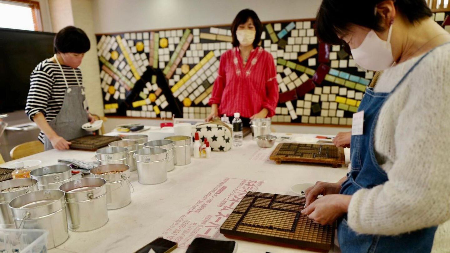 本格的に学ぶ場。モザイクタイル作家を志する方も学びに訪れる教室です。